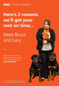 Based in Narre Warren, Melbourne, Only Estate Agents have made headlines after creating an advert which shows an employee holding two rottweilers by the lead, accompanied by the caption: