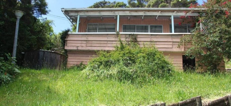 “Abandoned and broken” is how real estate agent Louise Roke describes this dilapidated property at Rocky Bay-Omiha on Waiheke Island.
