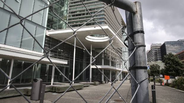 PHOTO: Fenced off and empty, the five-story building previously known as BNZ Harbour Quays, is to be demolished, owners CentrePort said