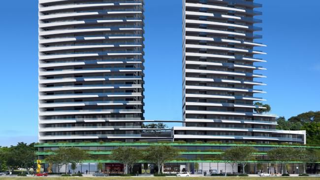 Artist impression of twin towers planned by Bob Ell for Bundall