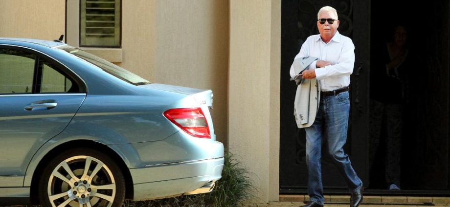 David Domingo walking from his Hope Island mansion to his Mercedes-Benz yesterday. Picture: Mike Batterham.