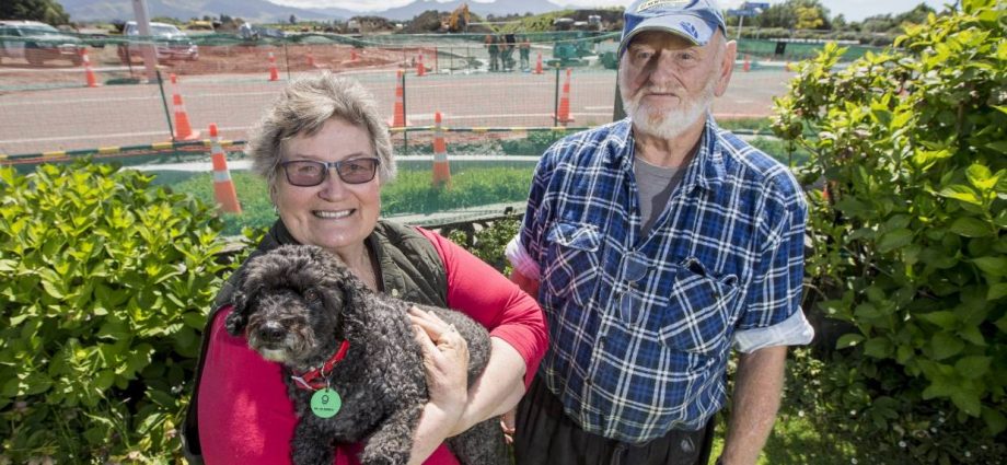 PHOTO: RICKY WILSON/STUFF – Betty and Bluey Smart, with dog Ram live across the road from Rose Manor subdivision on Old Renwick Rd.