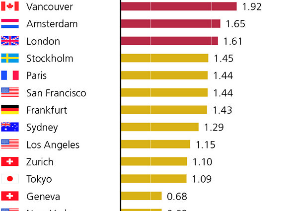 UBS Group’s Global Real Estate Bubble Index puts Munich, Toronto, Vancouver, London and Amsterdam alongside Hong Kong as cities currently in property bubble territory.