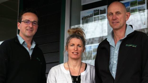 PHOTO: LUKE KIRKEBY/ STUFF – Tīrau based Rural and Lifestyle Sales agents David McGuire, Rachel Mathis and Steve Mathis.