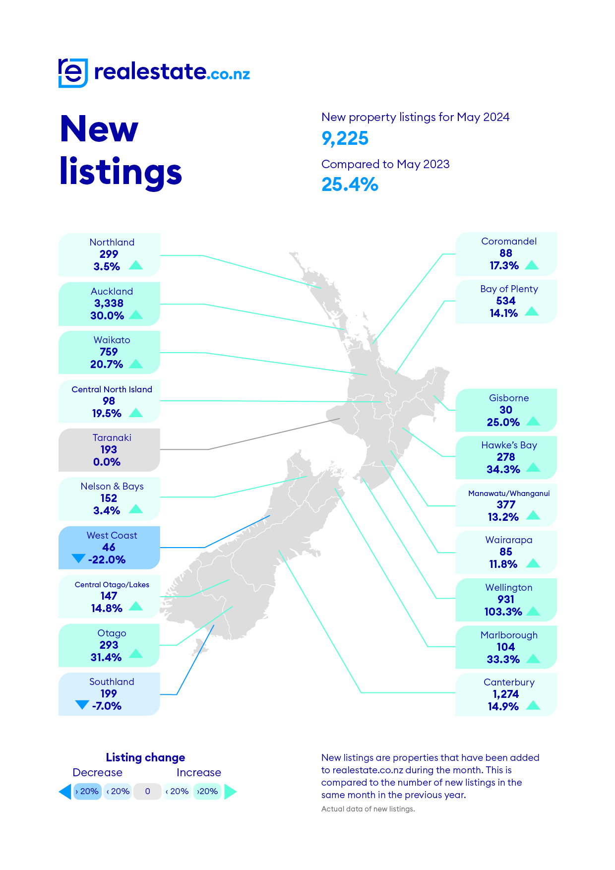 Bucking the trend, Gisborne and the West Coast saw stock levels decrease by 3.3% and 7.7%, respectively. However, Sarah Wood, CEO of realestate.co.nz, explains that the Gisborne market is small and prone to fluctuations: “I would consider this a fairly minor shift, perhaps even stable in the context of this local market.”
