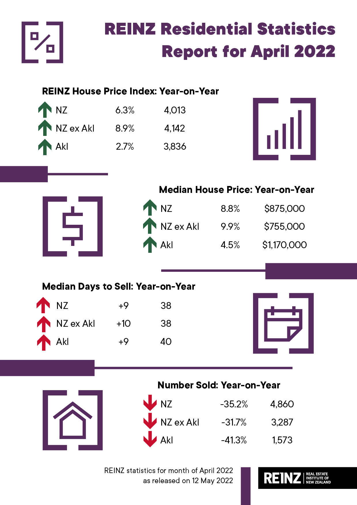“Falling attendance at open homes and auction rooms, and a decrease in buyer enquiries were reported across New Zealand — exacerbated by a spate of public holidays through April. Affordability, uncertainty and changing financial conditions remain primary concerns. Tighter lending criteria, LVRs, and increasing interest rates coupled with inflation continue to create challenges for some buyers — particularly first home buyers and investors.