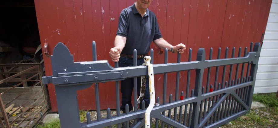 PHOTO: MURRAY WILSON/STUFF – The wandering gate back where it belongs – with owner David Wilkins.