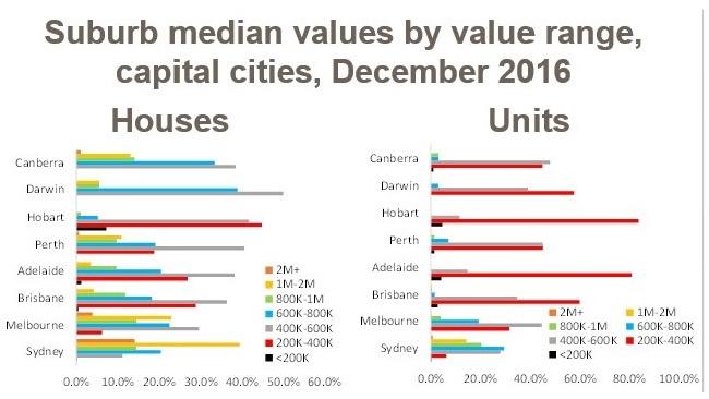 At the end of 2016, there were more Sydney suburbs with a median house value of $2 million or more than those which had a median house price of less than $600,000.