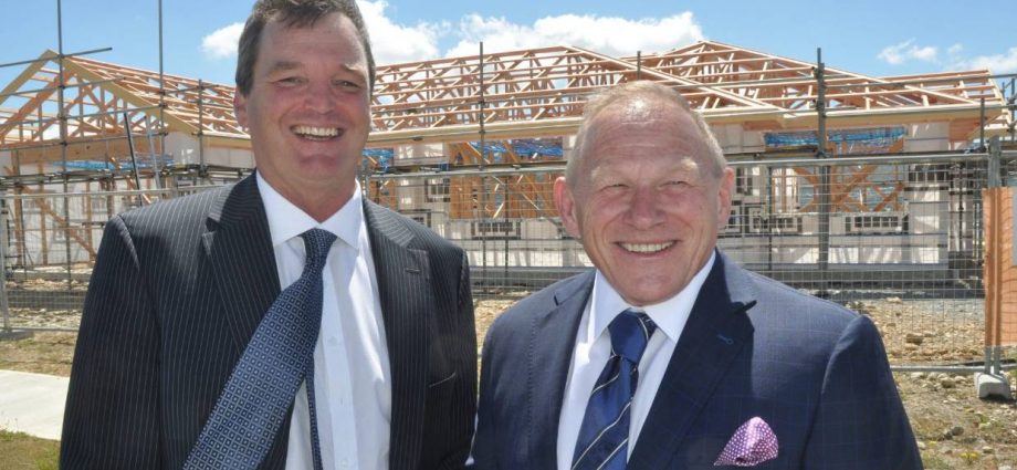 PHOTO:NICHOLAS BOYACK/STUFF Malcolm Gillies, right, has sold his long-time real estate business in Upper Hutt to concentrate on big ticket projects. He and Kevin Melville have have more than 1500 sections planned for Plimmerton Farm, north of Wellington.